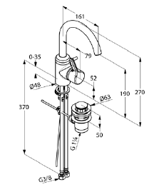 Single lever basin mixer DN 10 Solid lever single hole mounted Flow class Z PCA Caché-aerator M 16,5 x 1 Ceramic cartridge with hot water limitation Swivelling spout Pop-up waste G 1 1/4 Flexible hoses G 3/8 Rapid installation set P-IX 18635/IA